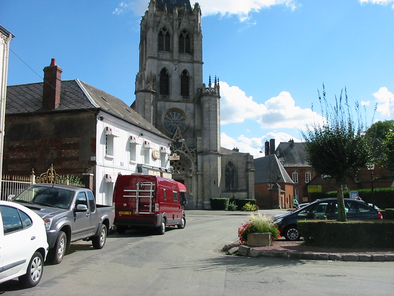 Typical French town square - at L'Aigle in Normandy. We had a super lunch in the Cafe (building on right). Unusually, the waitress spoke perfect English having lived in London for two years.